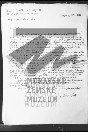 Rukopisná stížnost Augustina Navrátila adresovaná Krajské prokuratuře v Brně, březen 1978.