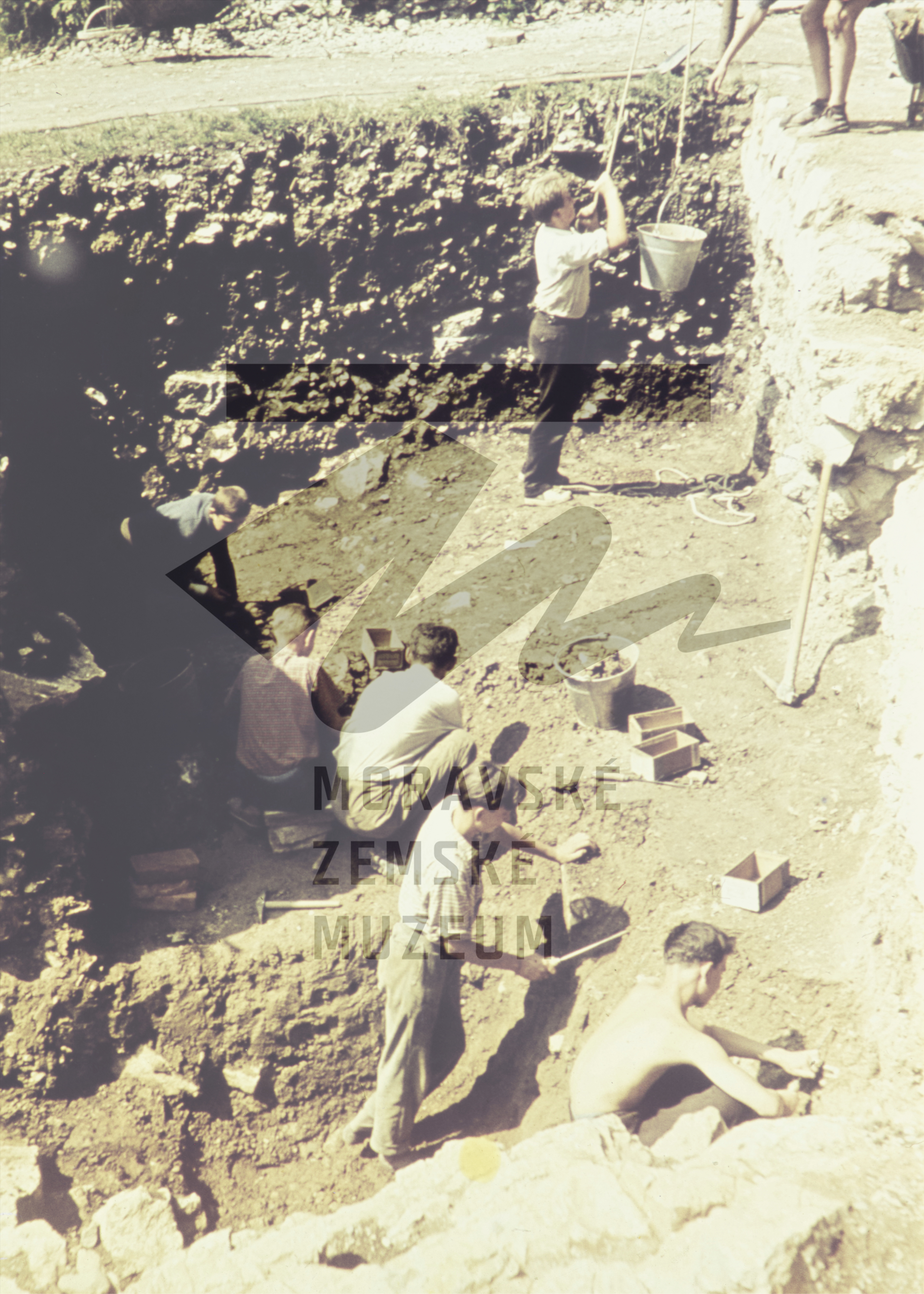 Hloubkové šachty v přední části výzkumu (jižní portál). Diapozitiv.