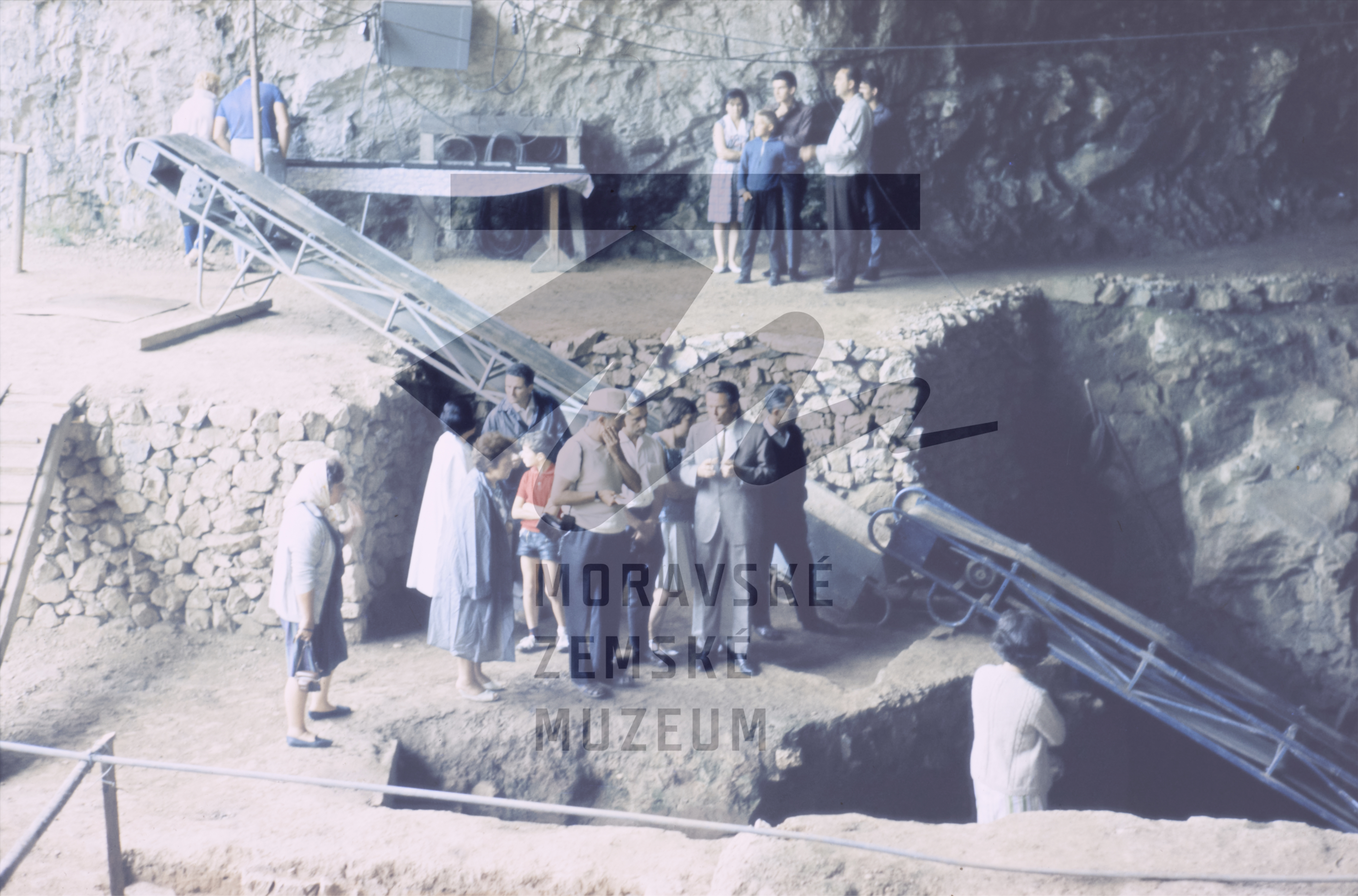 Kongres UISPP 1966 exkurze, diapozitiv. V popředí Nougier, Barriere, Valoch (v šedém obleku).