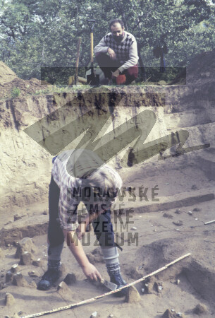 Preparace kulturní vrstvy szeletienu. Vpředu L. Seitl, na profilu O. Kroupa.