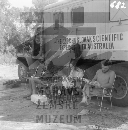 Jan Jelínek, Stanislav Novotný a Jan Daněk zpracovávají své poznatky; Arnham Land.