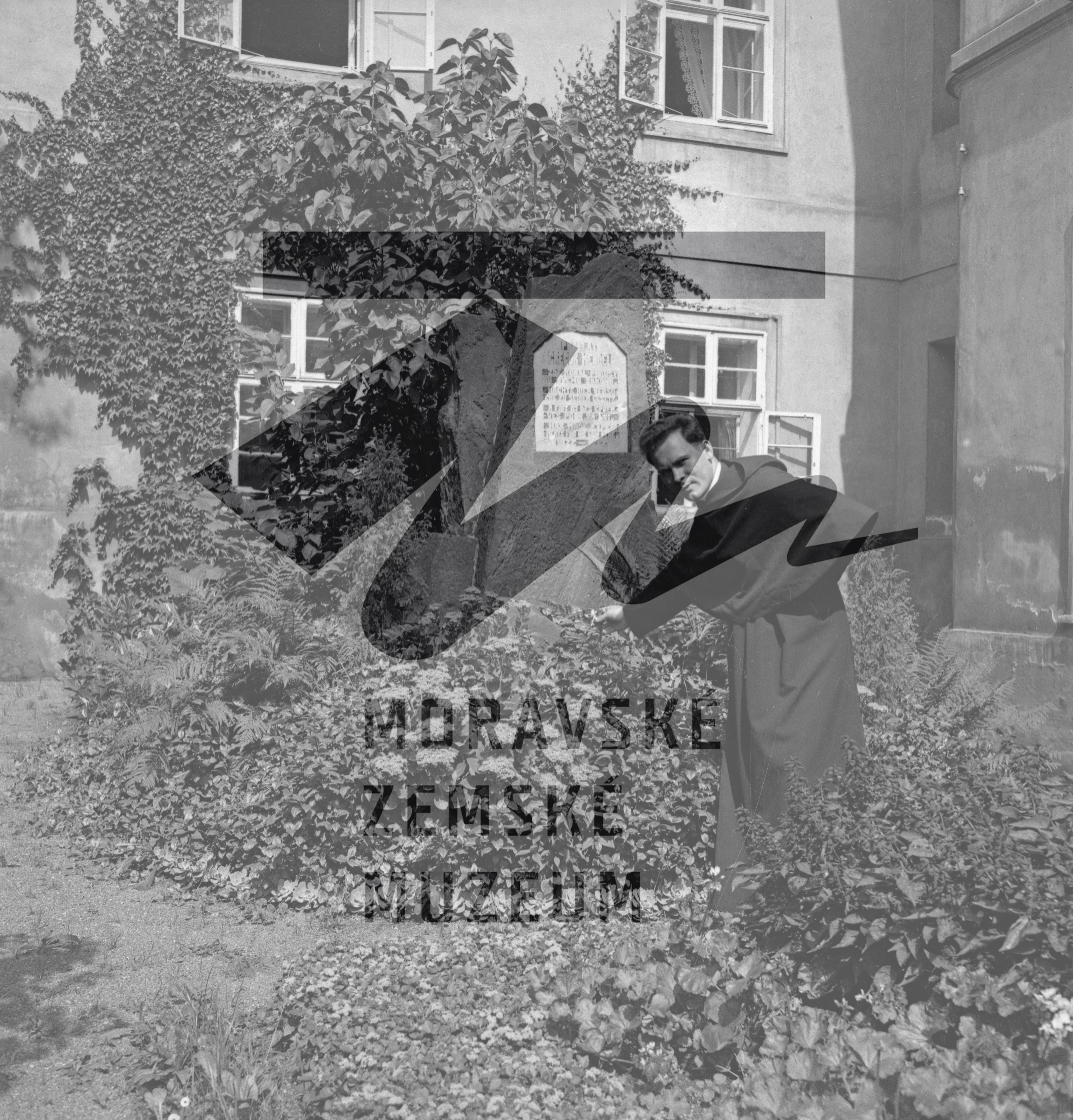 Mendelův pomník v zahrádce z doby meziválečné.