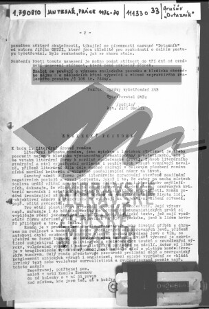 Znalecký posudek od pracovníků Českého úřadu pro tisk a informace na knihu Dotazník Jiřího Gruši, leden 1979.